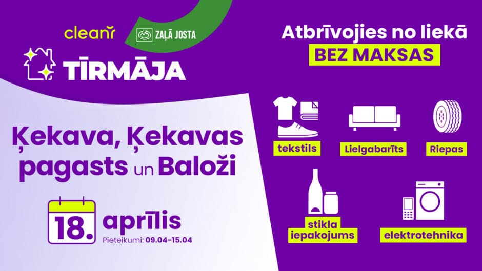 “Iepriekšējā akcijas “Tīrmāja” pavasara sezonā iedzīvotāji nodeva vairākus simtus tonnu šķirotu atkritumu, kuri citkārt varētu būt nonākuši neatbilstošās vietās, tā zaudējot iespēju tos izmantot atkārtoti. Redzam, ka sabiedrība šo iniciatīvu novērtē, jo tā ļauj vienkārši un atbildīgi atbrīvoties no liekā, vienlaikus rūpējoties gan par tīrāku vidi, gan ilgtspējīgu resursu izmantošanu. Tāpēc arī šoreiz iedzīvotāji tiek īpaši aicināti iesaistīties, lai kopīgi uzlabotu rezultātus un veidotu sakoptāku nākotni,” uzsver “CleanR” operacionālās vadības direktore Liene Rumpane.