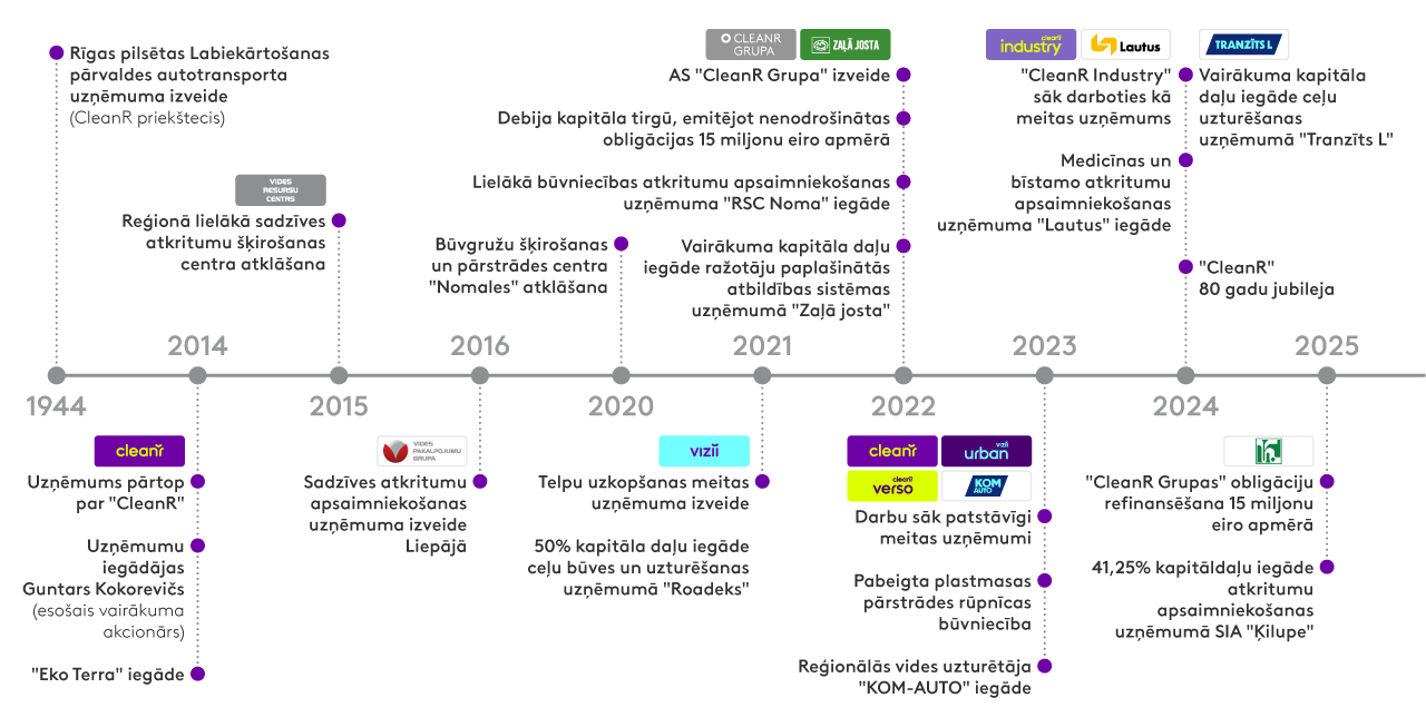 SIA "CleanR" ietilpst Latvijā vadošajā vides pakalpojumu koncernā AS “CleanR Grupa”, kura uzņēmumi nodrošina vairāk nekā 40 vides pakalpojumus sadzīves, industriālo, bīstamo un medicīnas atkritumu apsaimniekošanā, otrreizējo materiālu un būvgružu šķirošanā un pārstrādē, plastmasas pārstrādē, NAIK ražošanā, kā arī telpu un pilsētvides uzkopšanas un ražotāju paplašinātās atbildības sistēmas jomās.